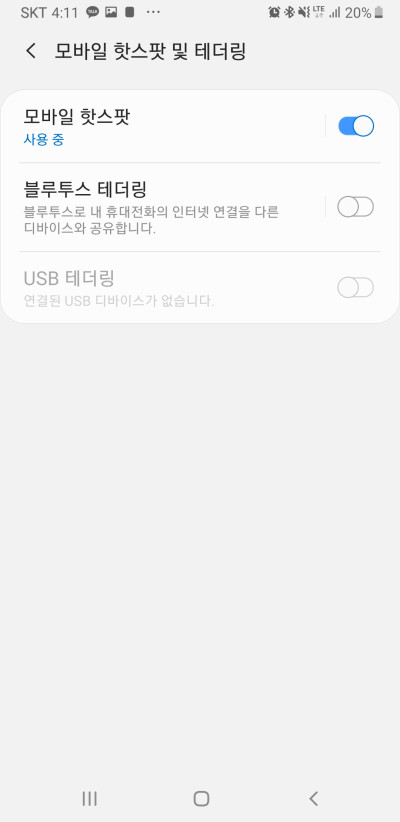 모바일 핫스팟을 설정하기 위해서는 몇가지 작업만 거치면 되는데 그 방법은 아래와 같습니다.