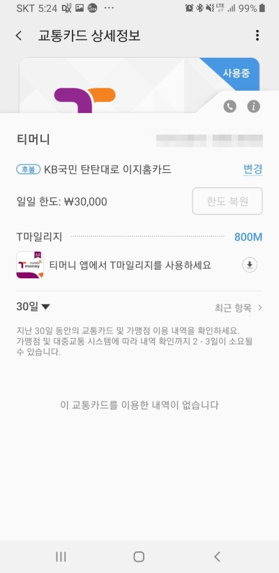 모바일 결제 항목으로 이동하여 삼성페이(기본값)를 선택하고 티머니를 이용하여 버스카드 활용도 가능합니다. 하지만 아이폰의 경우에는 어떠할까요?