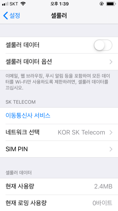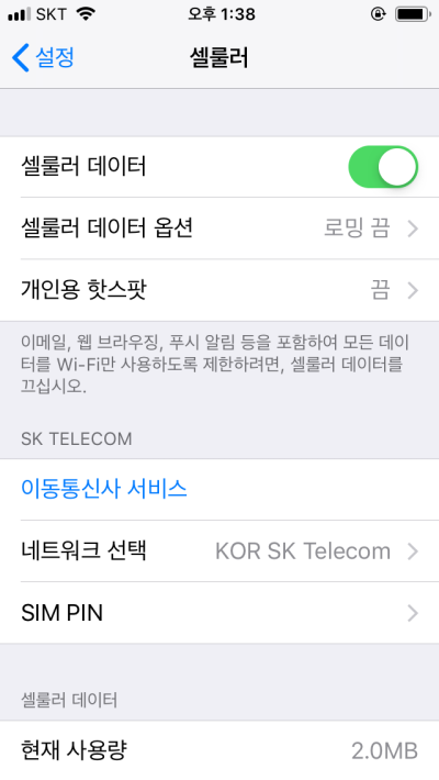 아이폰 셀룰러 데이터를 활성화 시켰습니다.