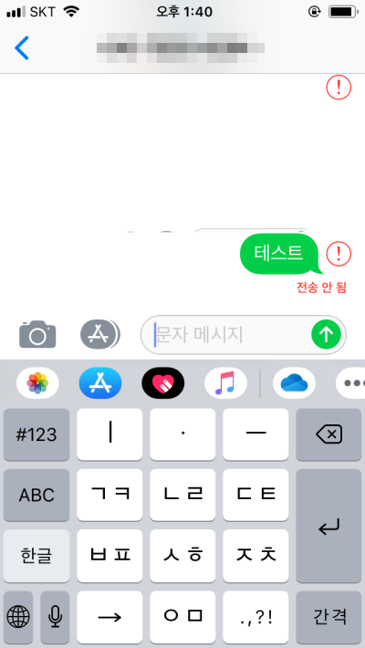 메세지를 보냈으나 전송안됨이라고 뜨며 보내지지 않습니다. 메인화면의 메세지 항목에는 빨간색 느낌표가 떠 있습니다.