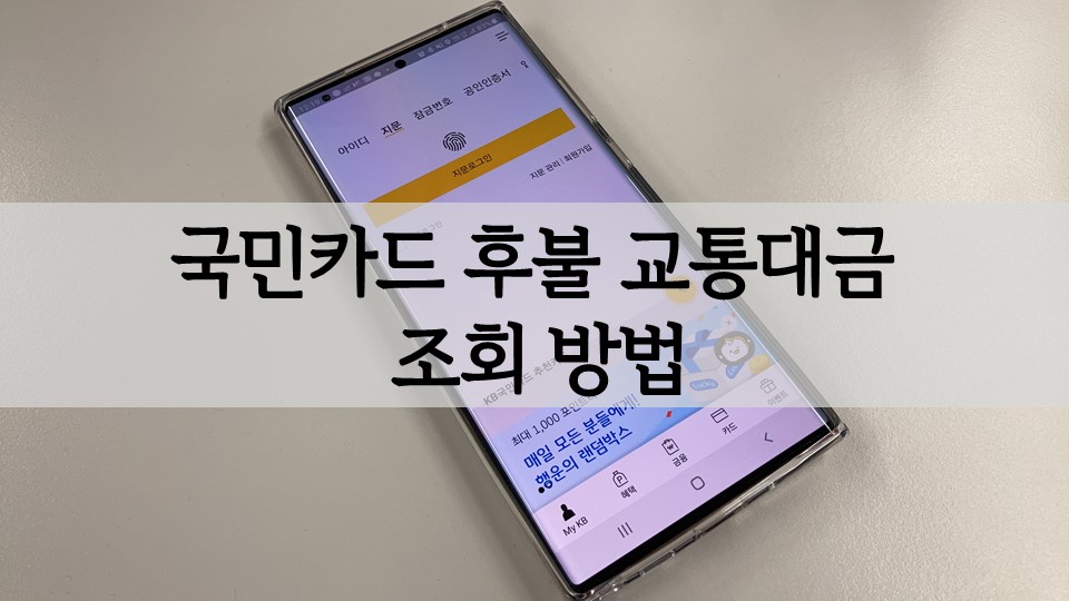 국민카드(국민은행) 후불 교통대금 조회 방법 어떻게 되는지 간단하게 알아보겠습니다.