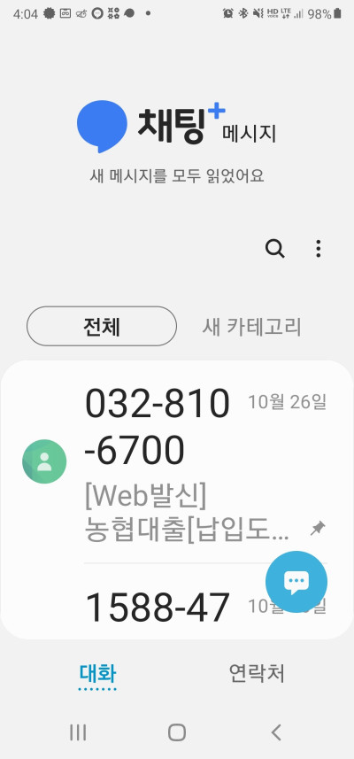 글자 크기가 기본일때와 최대로 키웠을때의 문자 메세지 상태입니다.