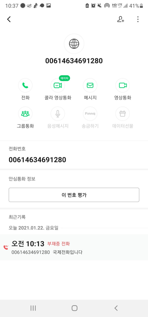 SKT T전화 앱을 사용하고 있기 때문에 국제전화라는 것을 바로 알려주며 번호가 상당히 긴 것을 알 수 있습니다. 그렇다면 이 번호는 보이스피싱일까요?