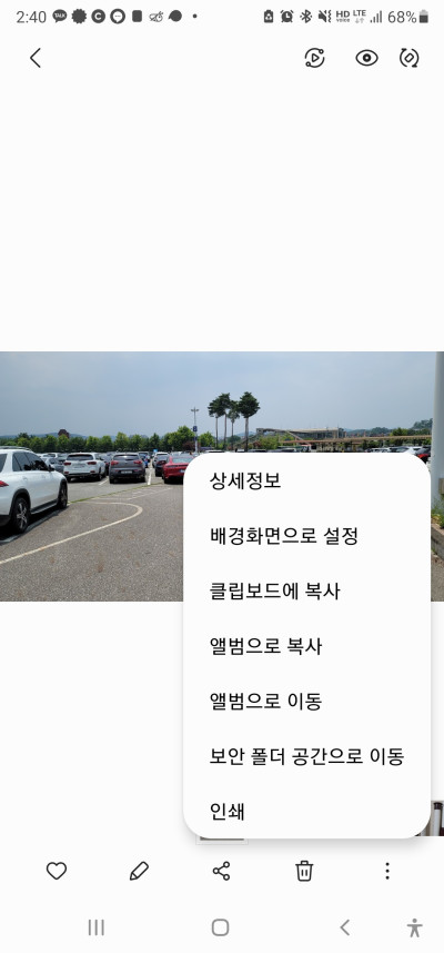 해당 사진이 보안폴더로 이동된 모습입니다. 우측 하단 三표시를 누르고 다시 꺼낼 수도 있습니다.
