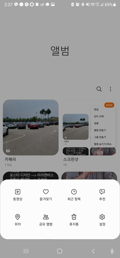 갤러리 앱을 열어봐도 숨기기 및 잠금과 같은 옵션은 보이지 않습니다.