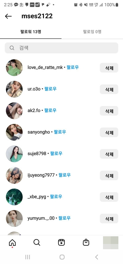 많은 사람들이 팔로우를 했는데 여기 보이는 사람들 전부 작업계정입니다.