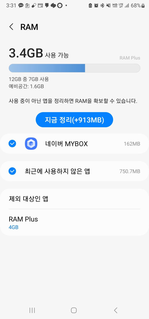 램이 충분한 C 스마트폰과 같은 프리미엄 라인에서는 게임을 하며 여러가지 작업을 동시에 하는 힘든 작업을 하지 않는 이상 현재 장착된 램만을 이용하여 작업처리가 가능하기 때문에 사용하는 상황에 따라 램플러스의 의미가 없을 수도 있습니다.
