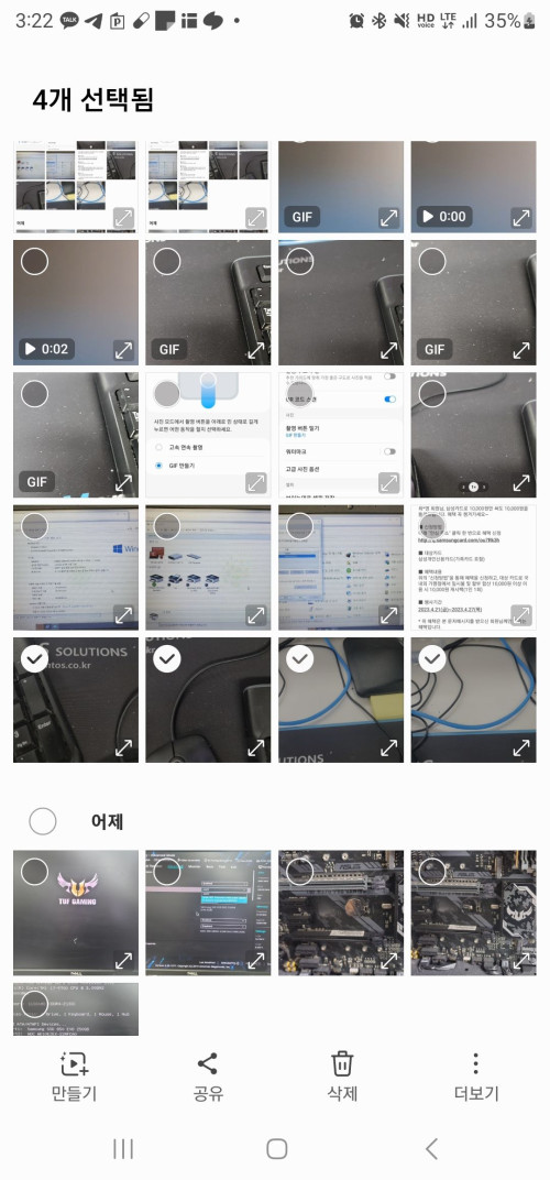 여러장의 사진을 이용하여 움짤을 만드는 작업은 갤러리 앱에서 진행할 수 있습니다.