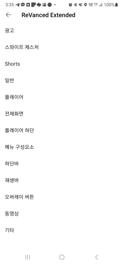 하단에 보이는 ReVanced Extended 메뉴로 이동하여 다시 하단에 보이는 기타를 누릅니다.