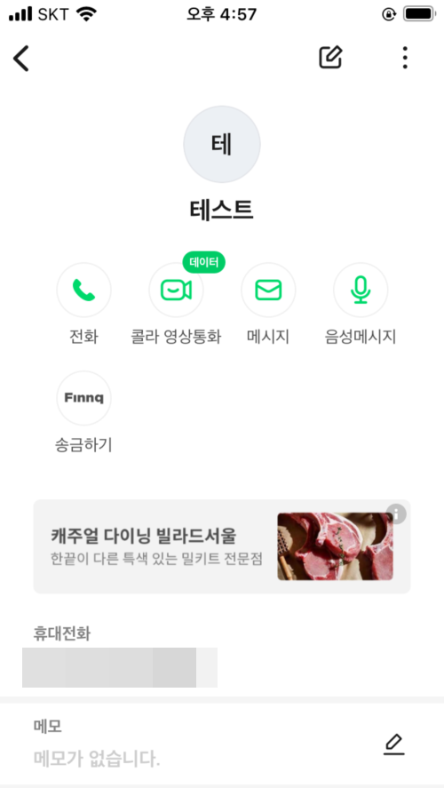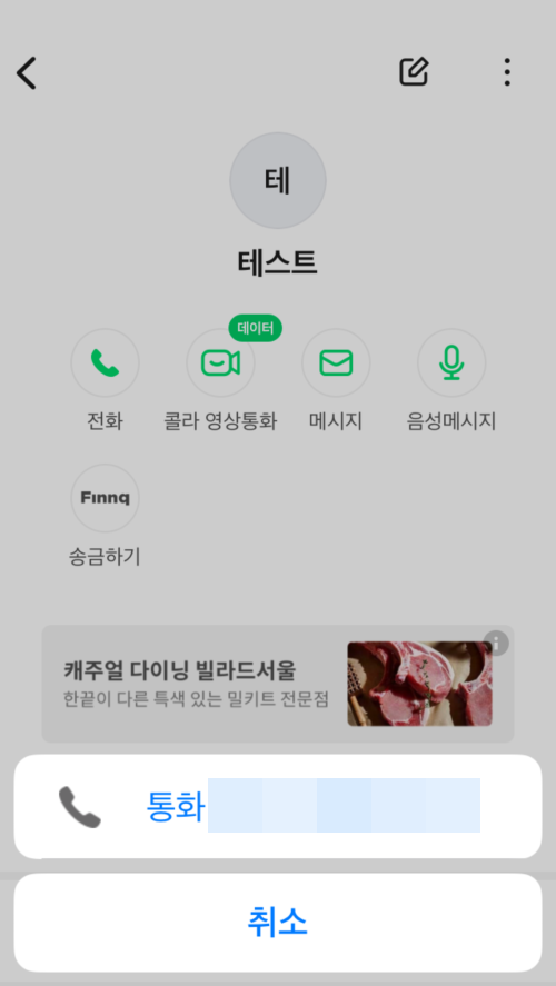반면에 최근통화목록을 눌러보면 어떠할까요? 목록 중 보이는 전화번호를 누르면 안드로이드와 동일하게 해당 휴대폰번호의 정보를 확인할 수 있습니다.
